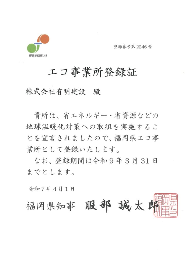 - 特定建設業 福岡県知事免許(特2)第65283号